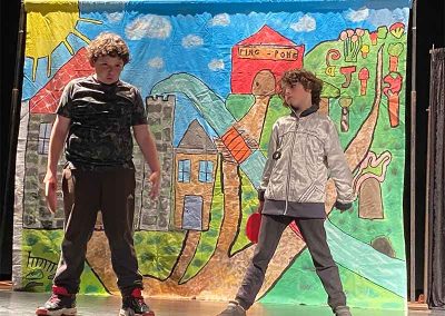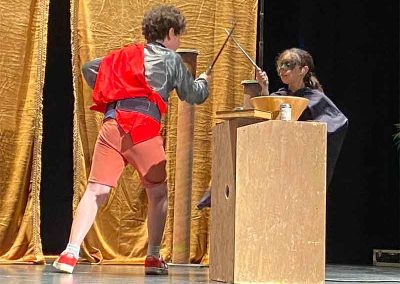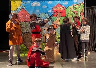 Deux demi-journées permettent la création des décors, accessoires et costumes avec l’aide des plus grands et des familles : c’est un moment intergénérationnel. Ces journées participent activement à la cohésion du groupe entre eux mais aussi avec les intervenantes.